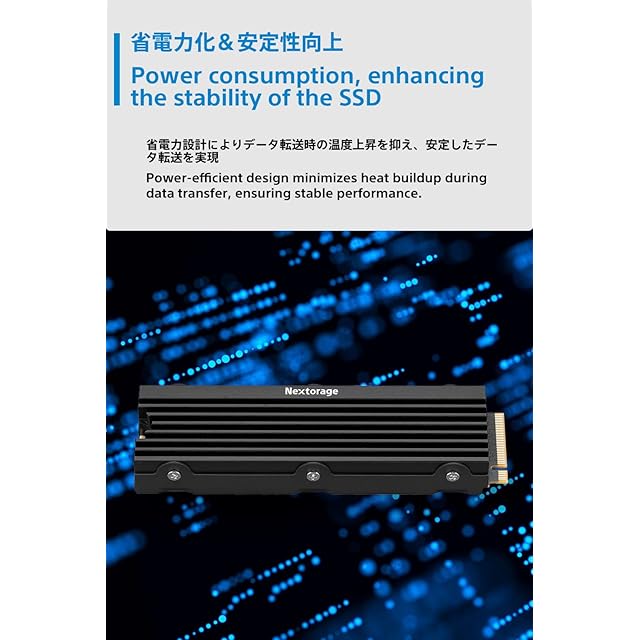 【安定性を強化】蓄積した技術による省電力効果で、消費電力の削減と共に温度状況を抑制し、SSDの安定性を向上させます。これにより、ロード時間の短縮や途切れないプレイ体験が可能になり、より快適でスムーズなゲーミング環境を提供します。