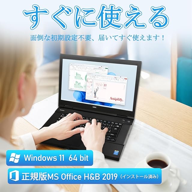 【Office 2019搭載&初期設定済み】 MS Office 2019(Word、Excel、PowerPoint等)を正規ライセンスで搭載済み。OSはWindows11 Proで、すでにセットアップ済みの状態でお届けします。箱から取り出してすぐに作業や学習に入れるため、設定の手間がなく、パソコンに不慣れな方にも安心です。