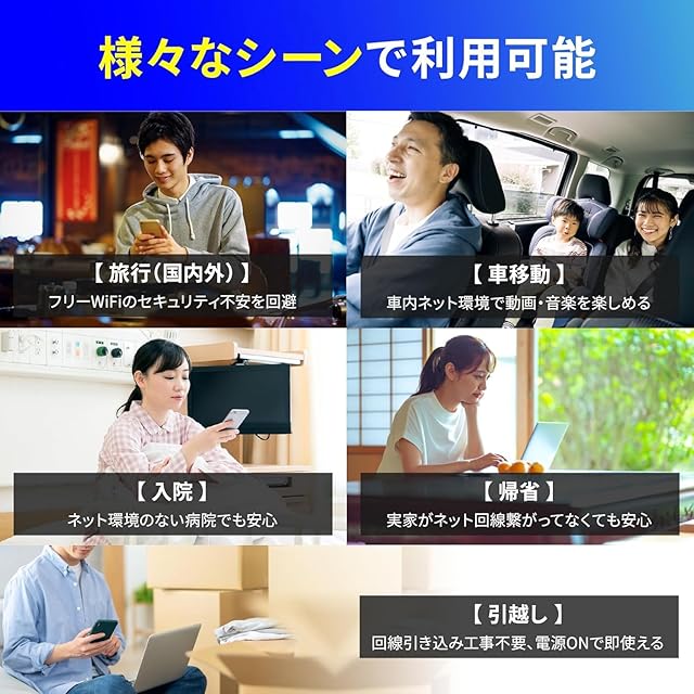 【契約・返却不要、端末買い切り型】買ってすぐに使える簡単モバイルWiFi端末。購入後、電源ONで開通して初回の有効期間30日(日本国内50GB)がスタートします。※物理SIM契約不要・SIMカードなしで使えます