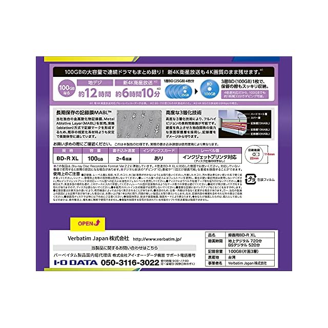 品種:録画用 BD-R XL(100GB)