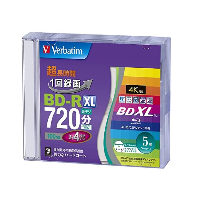 Verbatim バーベイタム 1回録画用 ブルーレイディスク BD-R XL 100GB 5枚 ホワイトプリンタブル 片面3層 2-4倍速 VBR520YP5V2