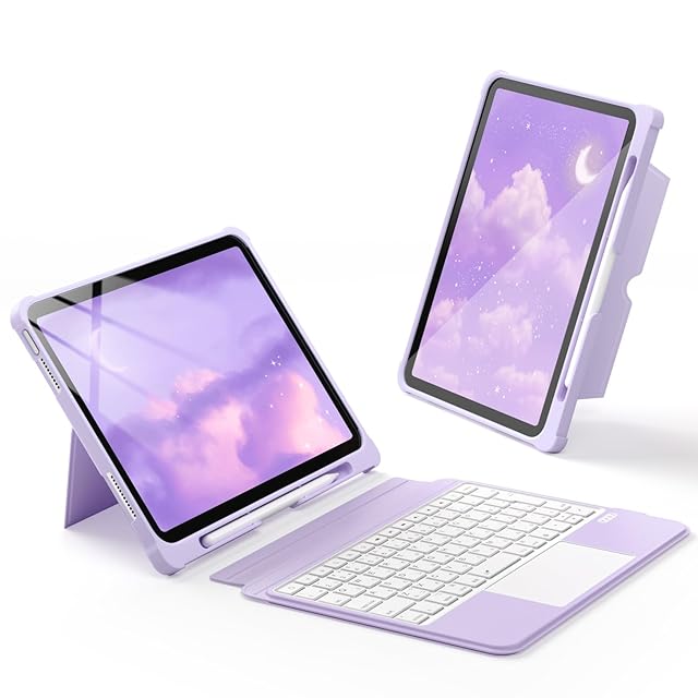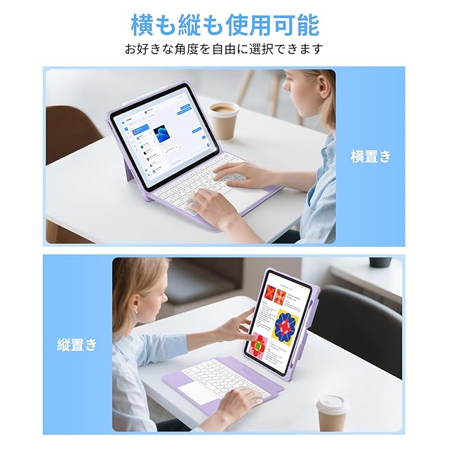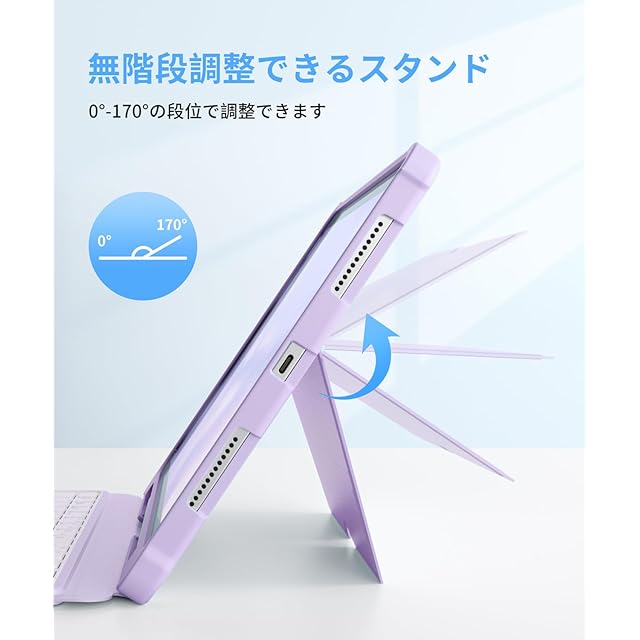 Omikamo 【業界革新版】ipad A16 11世代&10世代 JIS日本語配列キーボード 超高精度トラックパッド付き ipad A16 キーボード 人間工学 170°無階段調整 静音キー 11インチ/10.9インチ 縦置き 横置き 脱着式 ペン収納 全面保護 省エネ Type-C充電式 日本語取扱説明書付き パープル