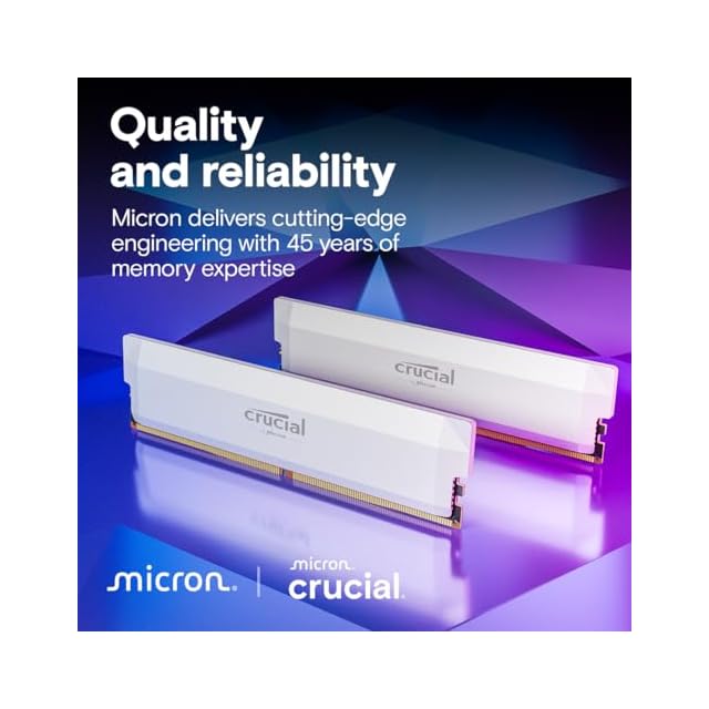 Crucial(クルーシャル) PRO (マイクロン製) デスクトップ用メモリ 32GB×2枚 DDR5-6000 ホワイト オーバークロック CP2K32G60C40U5W 【国内正規代理店品】