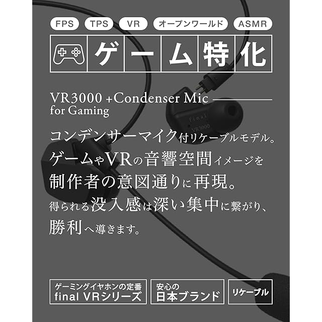 final VR3000 Condenser Mic for Gaming・有線ゲーミング イヤホン・バイノーラル3Dサラウンド・マイク付き 【ゲーム/VR/バイノーラル/ASMR / 360オーディオ推奨】