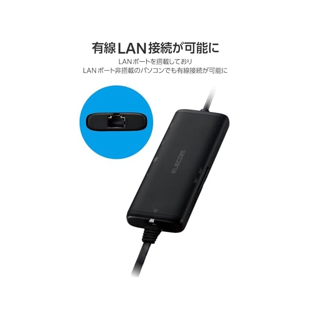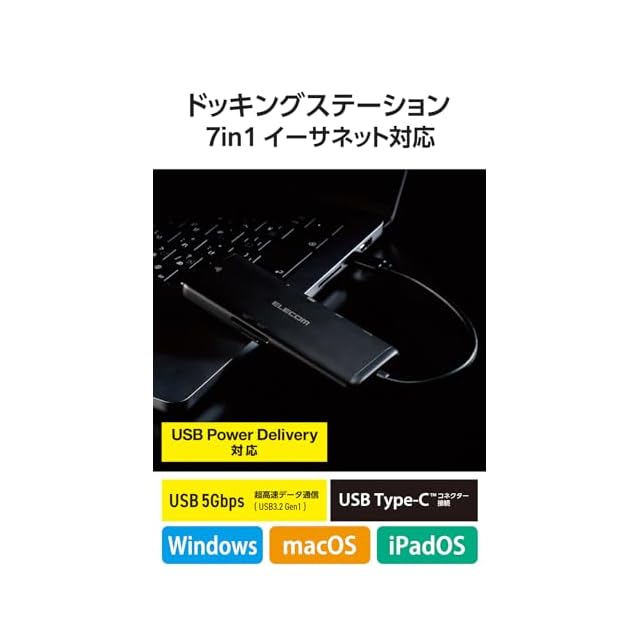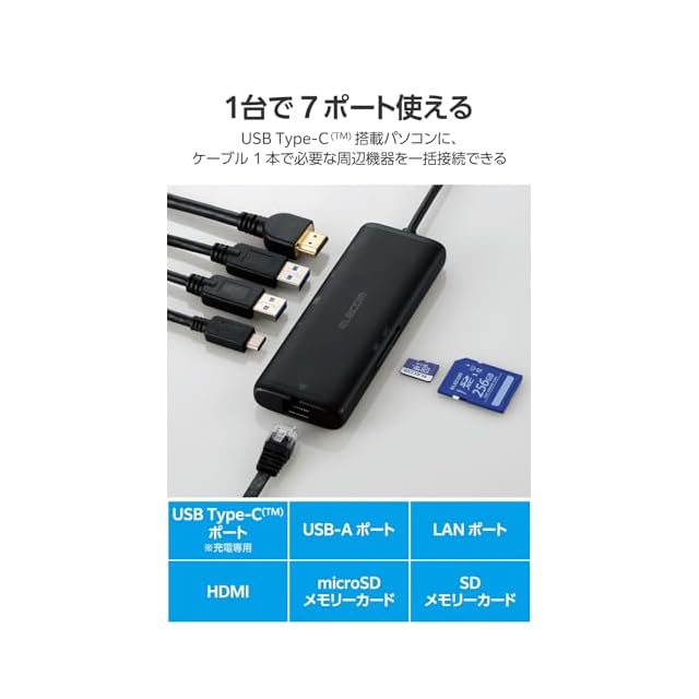 エレコム USB-C ハブ ドッキングステーション 7in1 PD対応 100W LANポート HDMI 4K60Hz 高速データ転送 5Gbps SD/microSD ブラック DST-W02