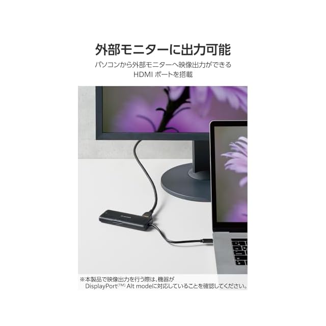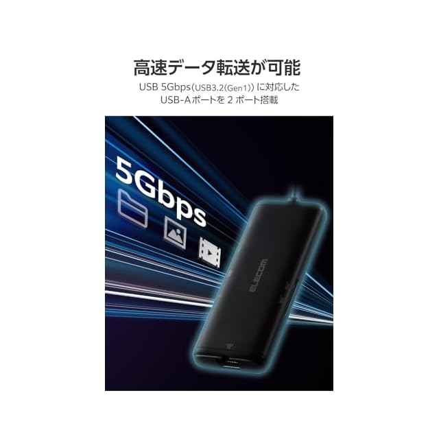 USB 5Gbps(USB3.2(Gen1))に対応したUSBポートを搭載したドッキングステーションです。USB Type-C(TM)搭載パソコンに、ケーブル1本で必要な周辺機器を一括接続できます。USBポートの他にLANポート、HDMI(R)ポート、カードスロットを搭載しています。USB Power Deliveryも対応です。
