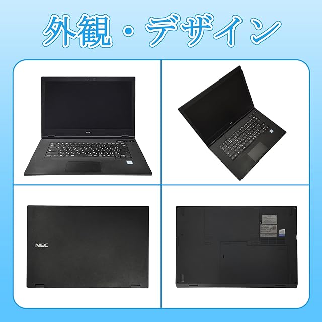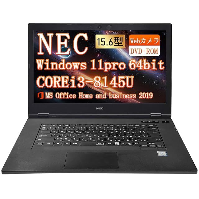 【整備済み品】ノートパソコン NEC Versapro VX-5 VKL21 15.6型 第8世代Core i3-8145U(最大動作3.9GHz) /Windows11 Pro/MS Office2019/WIFI内蔵/Webカメラ/LAN/Bluetooth/HDMI/VGA/Type-C (Corei3-8145U, メモリ16GBSSD512GB)