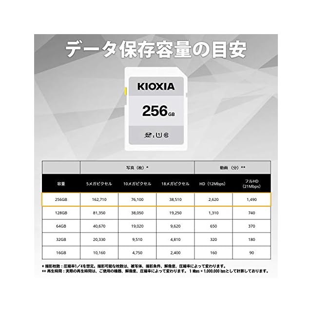 KIOXIA(キオクシア)【日本製】SDカード 256GB SDXC UHS-I対応 Class10 (転送速度50MB/s) 国内正規品 メーカー3年 KTHN-NW256G