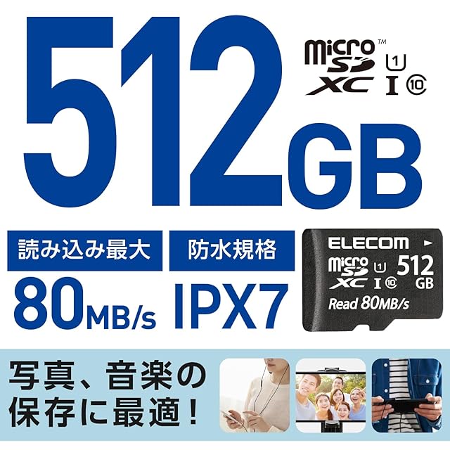 エレコム microSD 512GB マイクロSDカード UHS-1 U1 microSDXC IPX7 MF-AMS512GU11
