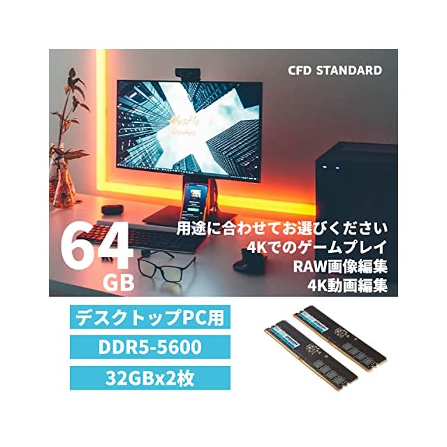 CFD販売 デスクトップPC用メモリ DDR5-5600 (PC5-33600) 32GB×2枚 (64GB) 相性 288pin シー・エフ・デー販売 CFD Standard W5U5600CS-32G