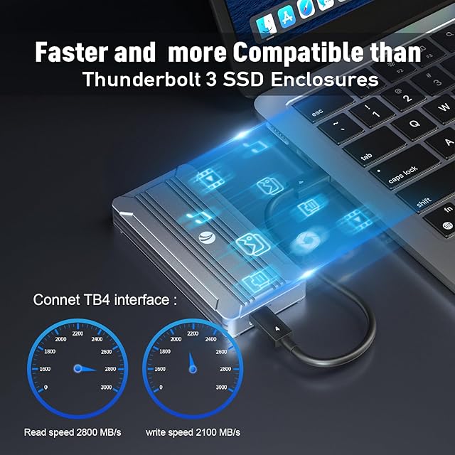 【超高速M.2 SSDケース】Intel JHL7440 ハイエンドメイン制御チップを使用し、デュアルチップマスター制御を採用し、USB4.0をサポートし、Thunderbolt 3/Thunderbolt 4 USB3.2/と完全に互換性があります。 3.1/3.0/Type-C (USB2.0以下は非対応)