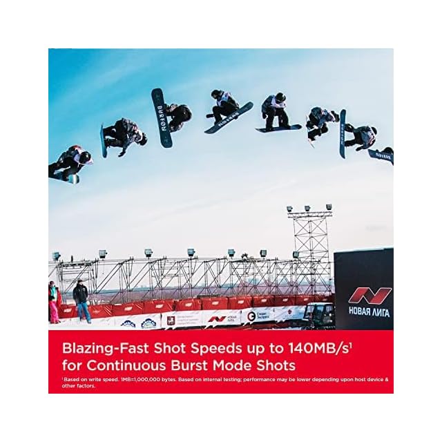 ショット速度は最大140MB/秒 (書き込み速度は最大140MB/秒。 内部試験に基づいています。ホストデバイス、インターフェース、使用状況などの要因によってパフォーマンスが低下する場合があります。 1MB (メガバイト) =100万バイト。 X = 150KB/秒)。