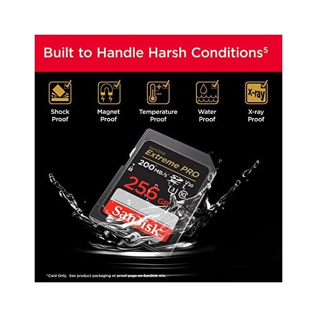 SanDisk QuickFlowテクノロジーを搭載した最大200MB/秒のカードオフロード速度で時間を節約。(最大200MB/秒の読み取り速度。UHS-I 104MB/秒を超える速度に達する独自の技術で設計されています。そのような速度に達することができる互換性のあるデバイスが必要です。 内部試験に基づいています。ホストデバイス、インターフェース、使用状況などの要因によってパフォーマンスが低下する場合があります。 1MB (メガバイト) =100万バイト。 X = 150KB/秒。 SanDisk QuickFlowテクノロジーは、64GB、128GB、256GB、512GB、1TBの容量のみで利用できます。 1GB (ギガバイト) = 10億バイト。 1TB (テラバイト) = 1兆バイト。 実際にユーザーが使用できるストレージ容量はこれより少なくなります。)