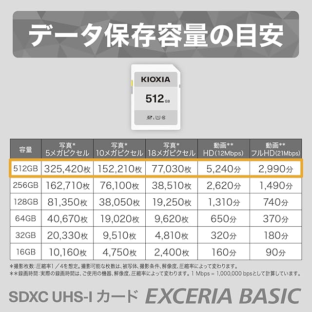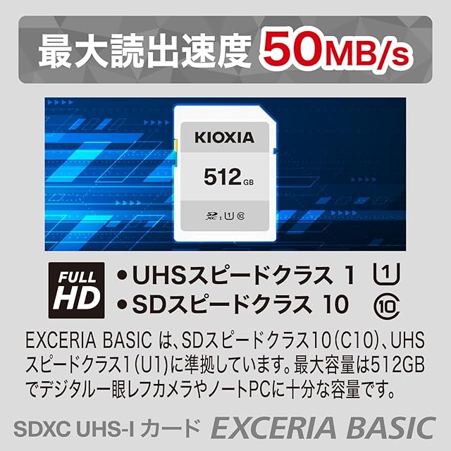 KIOXIA(キオクシア)【日本製】SDカード 512GB SDXC UHS-I対応 Class10 (転送速度50MB/s) 国内正規品 メーカー3年 KTHN-NW512G