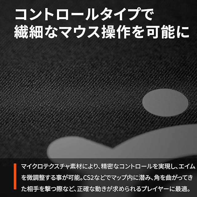 【コントロールタイプで、繊細なマウス操作を可能に】マイクロテクスチャ素材による制動力が精密なコントロールを実現し、エイムを微調整することができます。CS2などでマップ内に潜み、角を曲がってきた相手チームを撃つ際など、正確な動きが求められるプレイヤーに最適です。