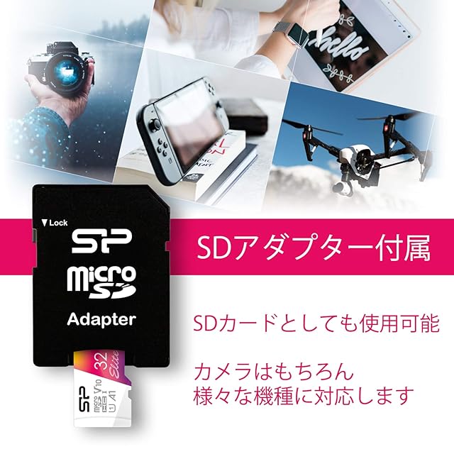 SDカードとしても使用できるアダプター付属