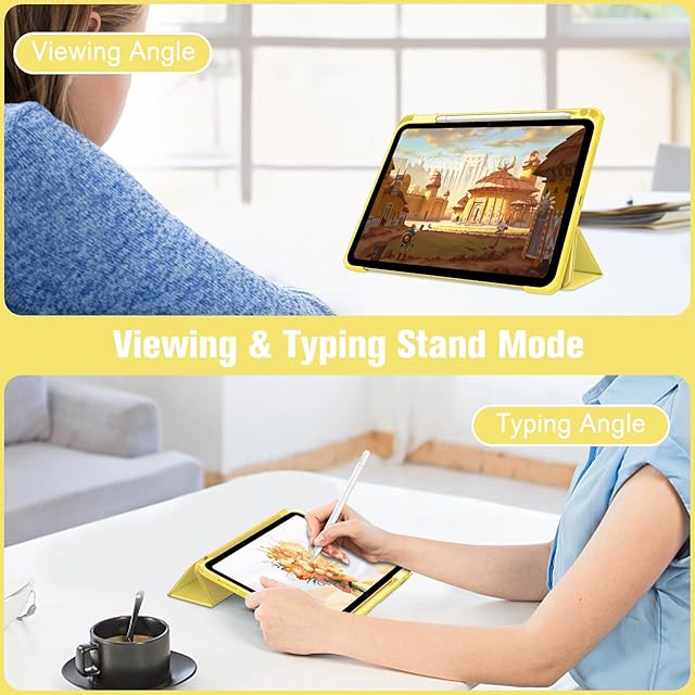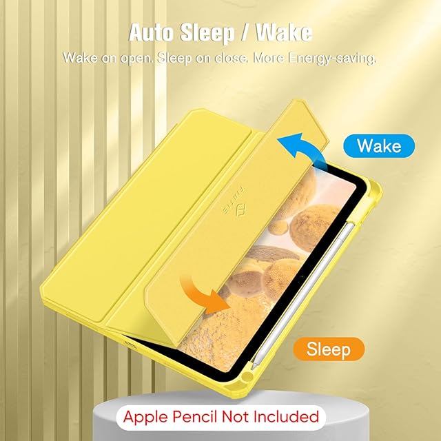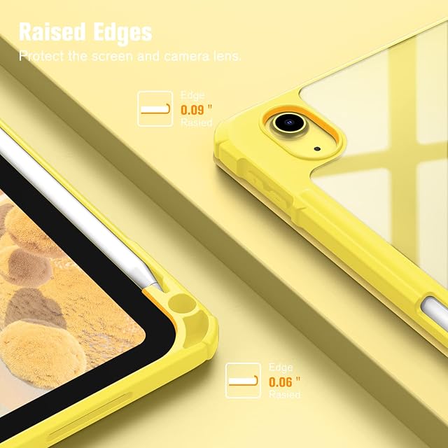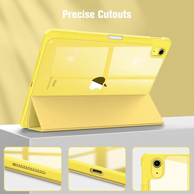 Fintie iPad 第11世代 (A16、2025) / 第10世代 (2022) ケース 11/10.9インチ 透明バックカバー Apple Pencil 収納可能 三つ折スタンド スリープ機能 軽量 薄型 傷つけ防止 PU合成レザー TPU(イェロー)