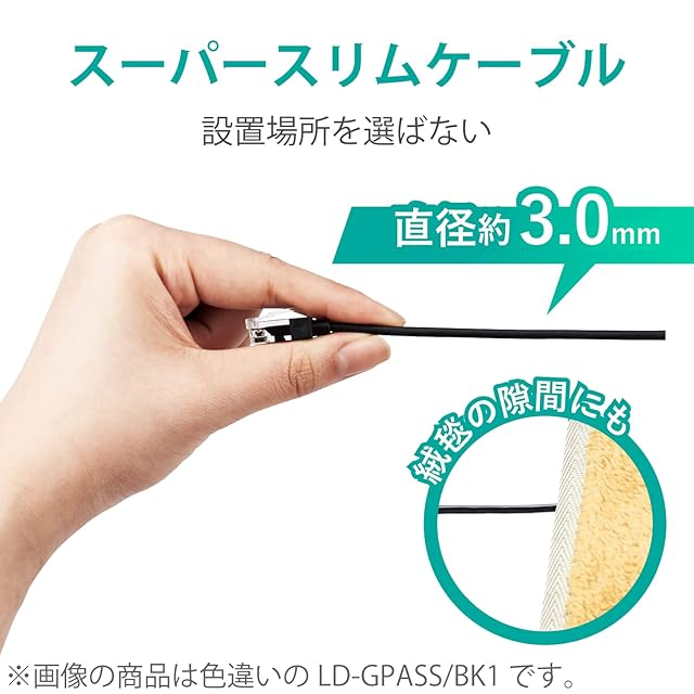 狭い場所などでの配線に適した、直径約3.0mmのスリムケーブルを採用しています。