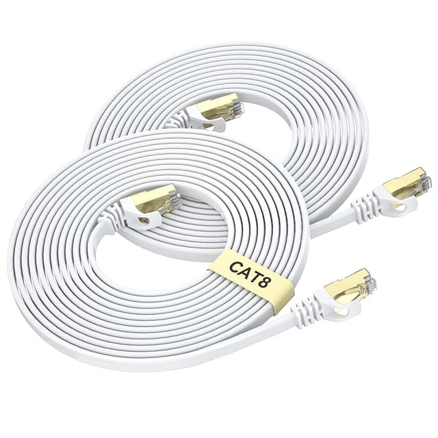 BUSOHE Cat8 LANケーブル 3-meters 2本セット フラットケーブル 40Gbps 2000MHz RJ45 コネクタ付き ギガビット 高速 イーサネットケーブル 金メッキ 爪折れ防止 カテゴリー8 家庭用 業務用 アクセスポイント等に適用います ランケーブル(ホワイト)