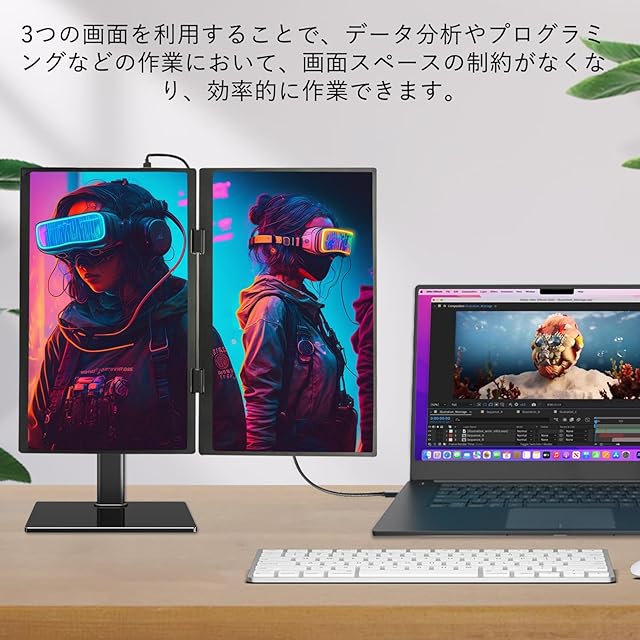 【汎用性の高い折り畳み式モニター】ディスプレイはコピーモード、拡張モード、セカンドスクリーンモードをサポートし、仕事、ゲーム、ビデオ視聴のニーズに応えます。このトリプルスクリーンノートパソコンモニターエクステンダーを使用すると、同時に異なるタスクに取り組むことができ、仕事や勉強で頻繁にインターフェースを切り替える必要がある場合、このデュアルスクリーンモニターは非常に適しています,作業効率が向上します。Nintendo Switchゲーム機、PS3、PS4、PS5等も簡単に繋がって。