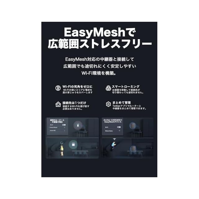 [EasyMesh互換] EasyMeshデバイスと組み合わせることで、お家全体をシームレスにカバーできます。