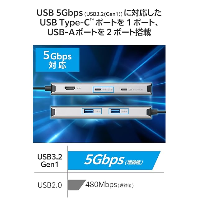 パソコン本体との接続は、最大5Gbps(理論値)の高速データ転送を実現するUSB 5Gbps(USB3.2(Gen1))に対応しています。