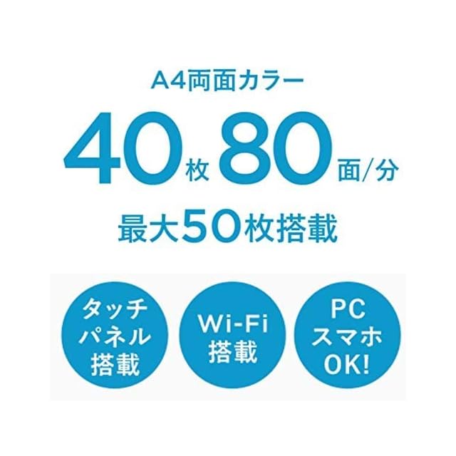 クラウド保存もワンタッチ!Wi-Fi(2.4/5GHz帯)対応でスキャナーがPCやスマートデバイスとワイヤレスでつながるだけでなく、インターネットにも直結。文書管理、名刺管理、経費精算や家計簿などの多彩なクラウドサービスへの保存もタッチパネルからワンタッチ。