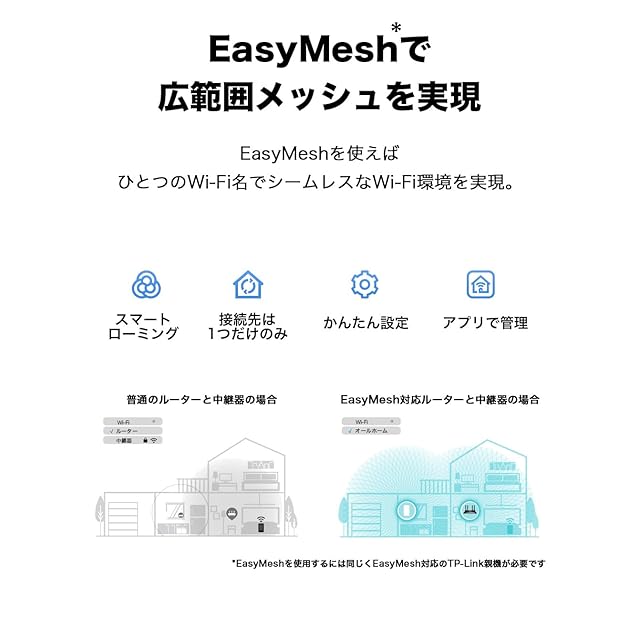 [ メッシュWiFi 対応] EasyMesh対応。同じくEasyMesh対応の中継機といっしょにつかってWI-Fi範囲をかんたん拡大