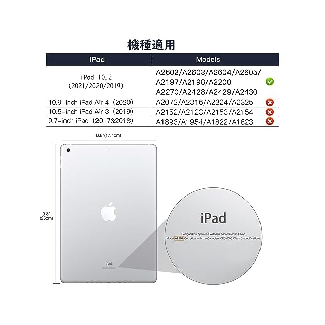 [対応機種]: iPad 10.2インチ 第9世代/第8世代/第7世代(2021/2020/2019)を向けに設計した専用スマートカバーとなります。iPad 第9世代 2021 (モデル番号:A2602/A2604/A2603/A2605)、 iPad 第8世代 2020 (モデル番号:A2270/A2428/A2429/A2430)、iPad 第7世代 2019 (モデル番号:A2197/A2198/A2200) 。ご購入になる前に、機種番号をしっかりとご確認してください。