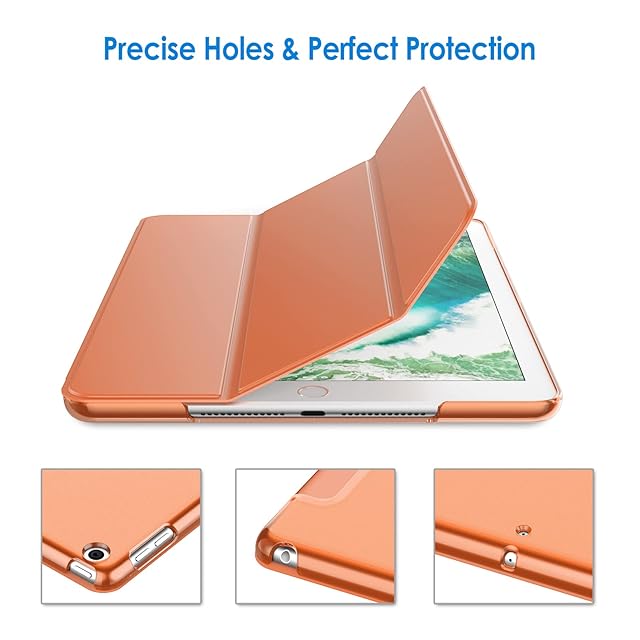 JETech iPad 9.7インチ (2018/2017,第6/5世代用) ケース PUレザー 三つ折スタンド オートスリープ機能 (パパイヤ)