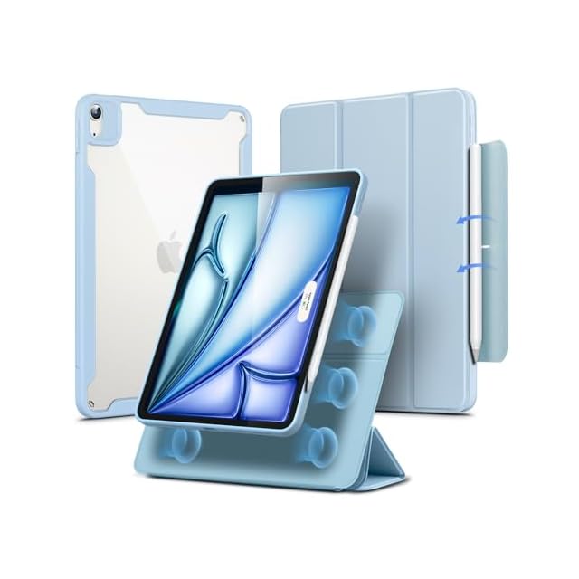 ESR iPad Air 11インチ ケース (M3/M2、2025/2024) iPad Air 第5/4世代 ケース(2022/2020)専用 Pencilホルダー付き 取り外し可能マグネットカバー 縦置き/横置きスタンド Pencil Pro/USB-C完全対応 Rebound 360シリーズ スカイブルー