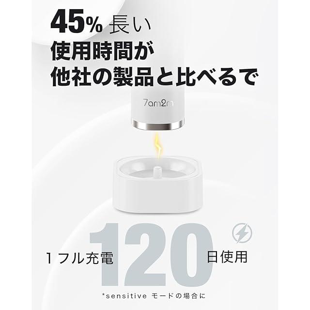 7am2m 電動歯ブラシ 超音波歯ブラシ ソニック 電動はぶらし振動 替えブラシ6本付き ワイヤレス急速充電 一回充電で90日使用可能 5モード 電動歯ブラシ磨き 2分間オートタイマー機能 IPX防水 低騒音 スマート歯磨き 純白