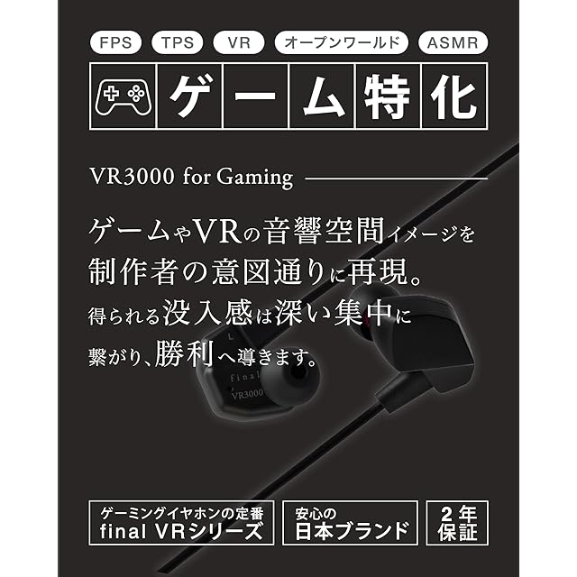 商品名:【限定色】final VR3000 for Gaming Matte Gray有線ゲーミング イヤホン・バイノーラル3Dサラウンド・マイク付き 【ゲーム/VR/バイノーラル/ASMR / 360オーディー推奨】