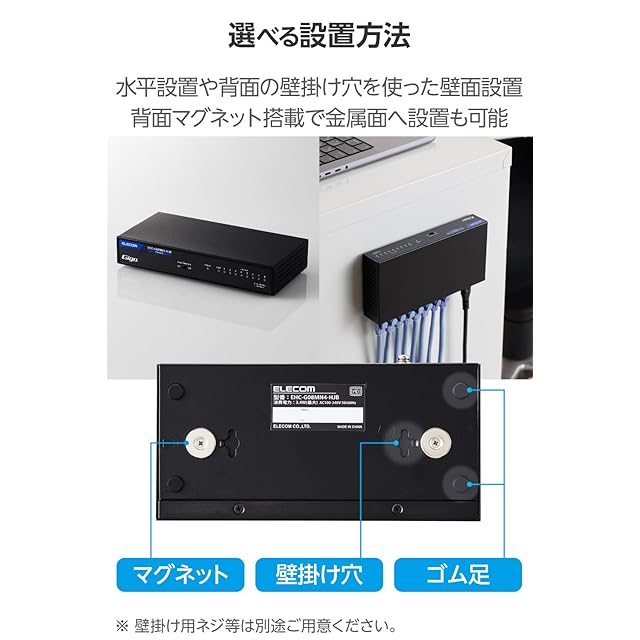 エレコム スイッチングハブ ギガビット 8ポート 金属筐体 マグネット付 電源内蔵 ブラック EHC-G08MN4A-HJB