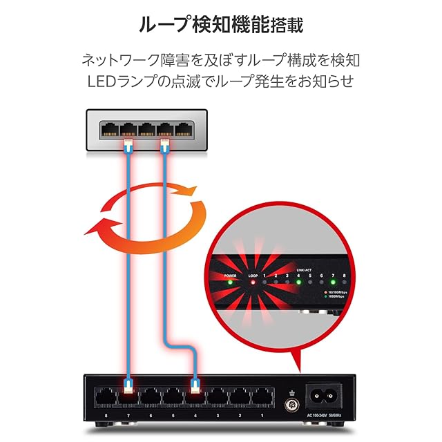 ストレート/クロスケーブルを自動判別する「Auto MDI/MDI-X」機能を全てのポートに搭載。接続ミスを防ぎます。