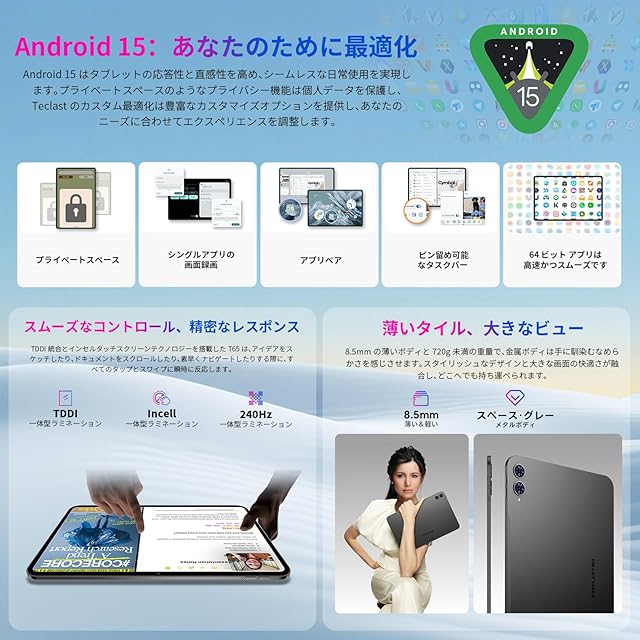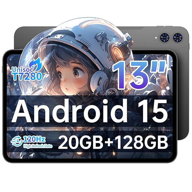 TECLAST T65 13 インチ タブレット 120Hz 画面リフレッシュレート,タブレット Android 15, 20GB RAM+128GB ROM, T7280 (T620) プロセッサ Tablet, SIM カード対応, 3.5mm イヤホンジャック, 大画面で学習・ワークに最適