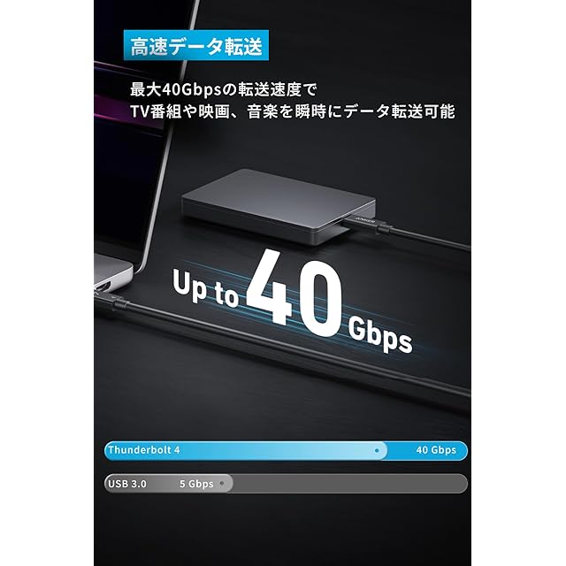 Anker USB-C & USB-C ケーブル Thunderbolt 4 (100W, 40Gbps) 2.0m 100W出力 8K対応 40Gbps 高速データ転送 iPhone16 Galaxy S25 MacBook Pro iPad Pro 各種対応 2.0m ブラック