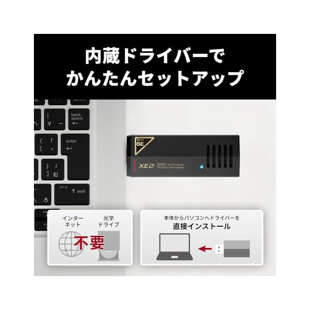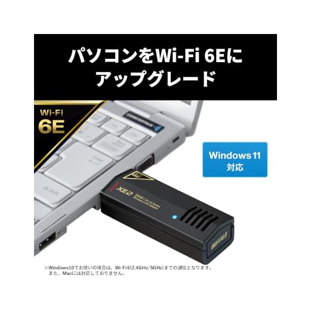 商品名:バッファロー Wi-Fi 6E 11ax 6GHz 無線LAN 子機 USB3.2 (Gen1) 対応 内蔵アンテナ タイプ ドライバー内蔵 WI-U3-2400XE2/N
