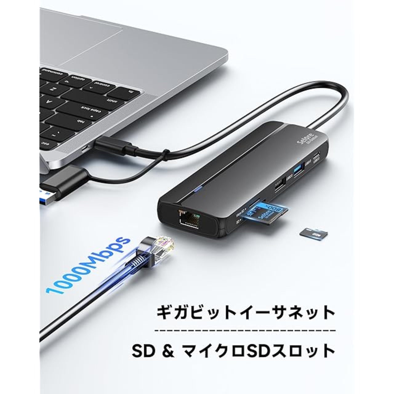 【USB AとType-C変換アダプタ付】:Selore USB C HUBはUSB-CとUSB-A変換アダプタが付属しています。従来のUSB C ドッキングステーションとは異なり、USB A/Cを使用すると、超高速のデータ転送速度と電力供給を楽しむことができます。アダプターは、高速ファイル転送とデバイスの急速充電に最適です