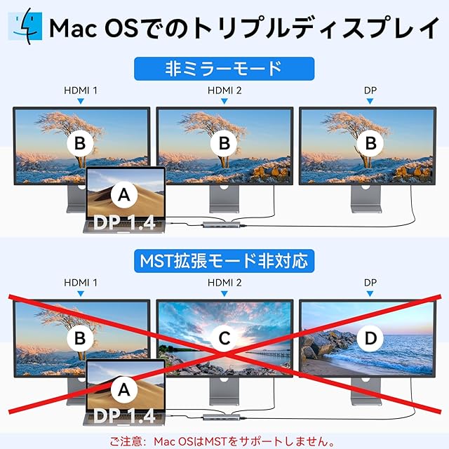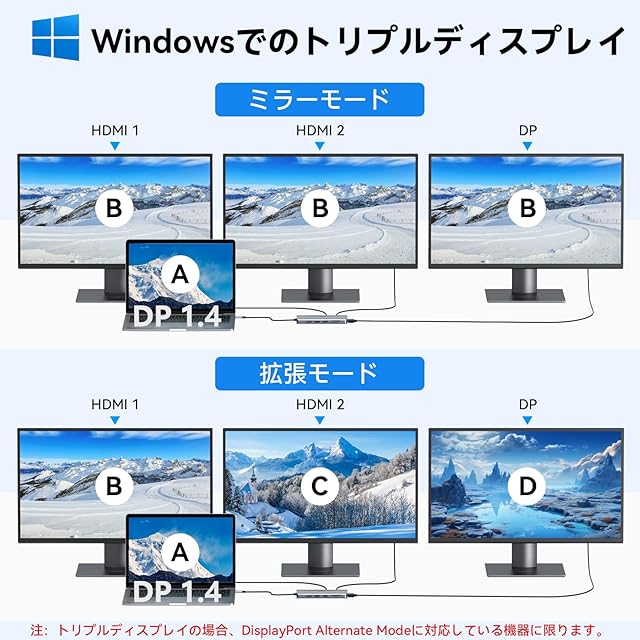 【幅広い互換性】このドッキングステーションディスプレイポートは、MacBook/MacBook Pro2022 2021 2020 2019 2018 2017、MacBook Air 2020-2018、iPad Pro 11インチ 12.9インチ、HP EliteBook 835 G9、Lenovo Yoga 13sITL用に設計されています。 /ThinkPad T1。 4 Gen14 Gen1 Gen1 Legion Y90 Thunderbolt 3/4またはUSB Cポートデバイス(00X/Legion Y9000X IAH7、Microsoft Surface Pro 7、Dell Inspiron 7400/XPS 13-9305/lnspiron 13 5330、Redmi Book Pro 14 2022など)に対応。 (❤注意:HDMI。 出力ポートにはThunderbolt 3/4/USB Type-Cポートがあり、DisplayPort代替モードをサポートするデバイスで使用できます。)