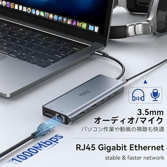 Selore USB C ドッキングステーション 2/3画面出力 type-c usb ハブ【13-in-1 3画面モード 2 HDMI+DP 】10Gbps データ転送 usbハブ 100W PD急速充電 デュアル 4K /DP/USB A/USB C ポート/RJ-45 /SD&TFカードスロット macOS/iPadOS/Windowsデバイス等対応 (2HDMI+DP)