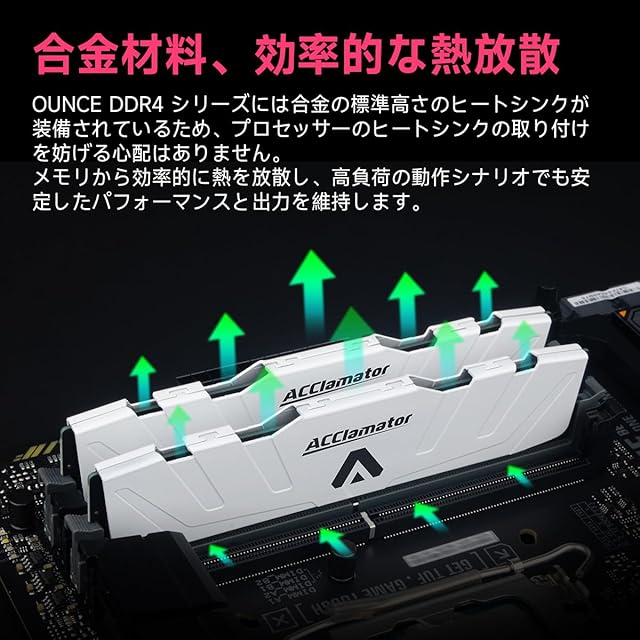 32GB 3200MHz DDR4 Memory / PC4-25600 XMP 1.35V (16GB x 2枚) ヒートシンク付きシリーズ デスクトップPC用 メモリモジュール Acclamator OUNCE
