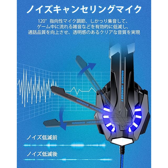 【ノイズキャンセリングマイク】音声を拾いやすい設計となっており、 高音質でオンライン通話が可能です。先進的なノイズ低減技術を採用し ているため雑音などの環境騒音を軽減したクリアなボイスチャットが 可能です。またヘッドセットには軽量のインラインコントローラーが 付属しており、音量調節やマイクのミュートが即時に可能です。マイク は120°調節できるためゲーム中でも邪魔になりません。ノイズキャン セリング機能もありますので、ウェブカメラ・IP電話機器専用のヘッド セットとしても使用可能です。