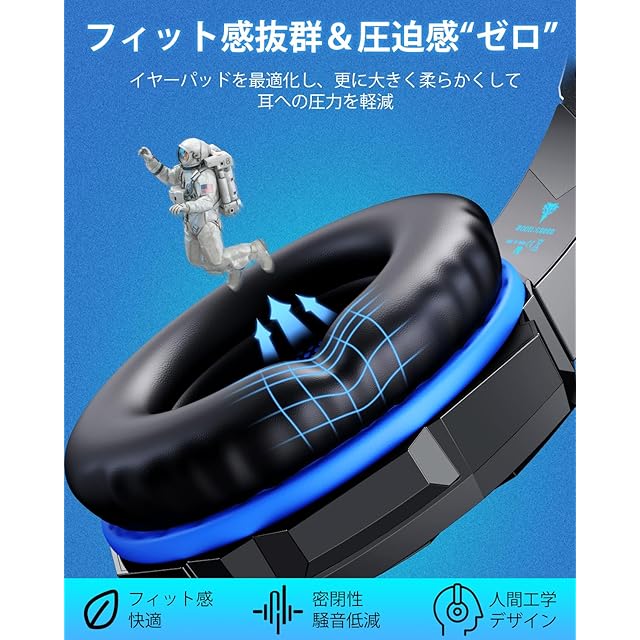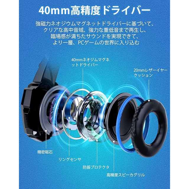 【大迫力なサラウンドサウンド】専門的なゲーミングヘッドセットメー カーにより作られた本製品の品質をぜひお楽しみ下さい。高精度強磁力ネオジウムドライバーに基づいて、クリアな低 域音質から高域音質まで再生し、また、3Dサラウンドサウンドによって、音の立体感を高め、震撼な衝撃音を高精度で再現可能にしました。本製品であればゲーム中のモンスターや敵の足音、銃声、爆発 音などを聞き逃すことはもうありません。