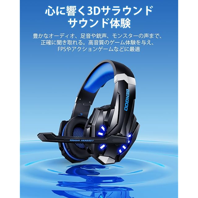 BENGOO ゲーミングヘッドセット PS5 ヘッドセット ノイズキャンセリング マイク付き 3.5mm有線 ゲーミングヘッドホン スイッチ ヘッドフォン 軽量 全効能 重低音 LEDライト コントローラー ミュート付き ステレオ FPS ゲーム用 Nintendo Switch Xbox One PS4 スマホ PC対応 (青)