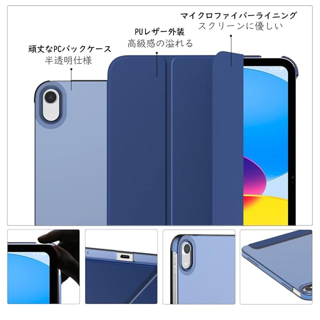 MoKo iPad 第11世代 (A16) ケース 2025、iPad 第10世代 ケース 2022 アイパッド 11/10世代 11/10.9インチ 保護カバー 手帳型 スタンド オートスリープ対応 高級PUレザー外装 マイクロファイバー裏地 軽量 薄型 傷つき/汚れ防止 NavyBlue