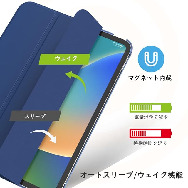 「iPad 第11/10世代専用」 2025発売のiPad第11世代(A16)11インチ(モデル番号:A3354/A3355/A3356)と2022年発売のiPad第10世代10.9インチ(モデル番号:A2696/A2757/A2777) のみに対応できる手帳式のケースです。薄型かつ軽量化にした設計で、取り扱いやすくiPadにピッタリフィットできる見栄えも保護力も両立させたスマートケースです。iPad第10世代以外の機種に対応できません。ご購入になる前に、機種をしっかりと確認してください。