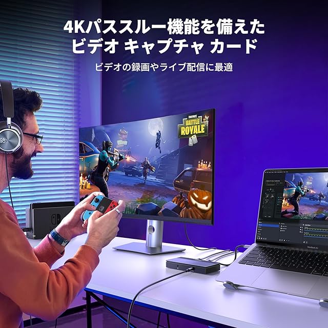 【4K@60Hzパススルー機能】4K60Hzパススルー機能を搭載しており、PlayStation 4 Pro、Xbox One Xなどの4K出力対応のゲーム機と接続することで、4Kの画面でプレイすると同時に配信・録画を行うことができる4Kビデオキャプチャーです。録画中でも低遅延で4K高画質なゲームプレイを実現、特にFPSなど一瞬の判断が勝敗を左右するようなゲームに最適です。 (★ご注意:4Kパススルー出力機能はHDR非対応となります。)