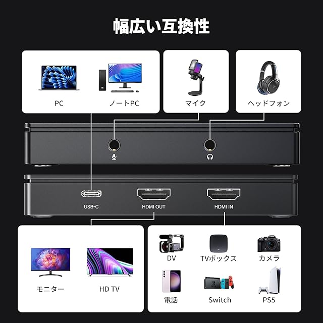 商品名:UGREEN 4K HDMI キャプチャーボード パススルー機能 4K@60Hz /1080P 60Hz 低遅延 ゲーム実況生配信 会議 ライブ配信 録画 画面共有 Switch PS5/PS4 Xbox Wiiu対応 Mac/Windows/Linux/Android/iPad OS17に適用