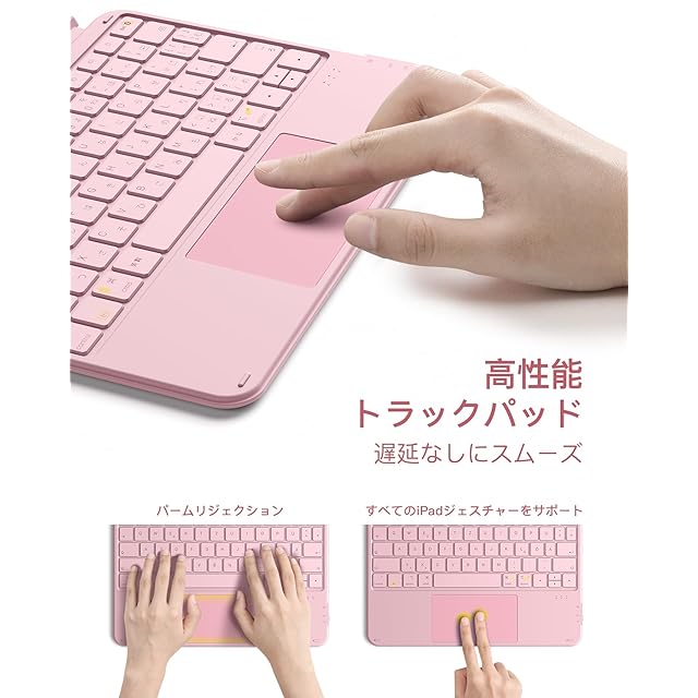 Inateck iPad Air 6 (M2) 11インチ 2024/M3 2025 キーボード付きケース JIS日本語配列 iPad A16 第11世代/第10世代用軽量キーボード Pro11インチ第1/2/3/4世代 Air第4/5世代 10.9インチに対応 横/縦置き 着脱式 タッチパッド搭載 KB04122 ピンク